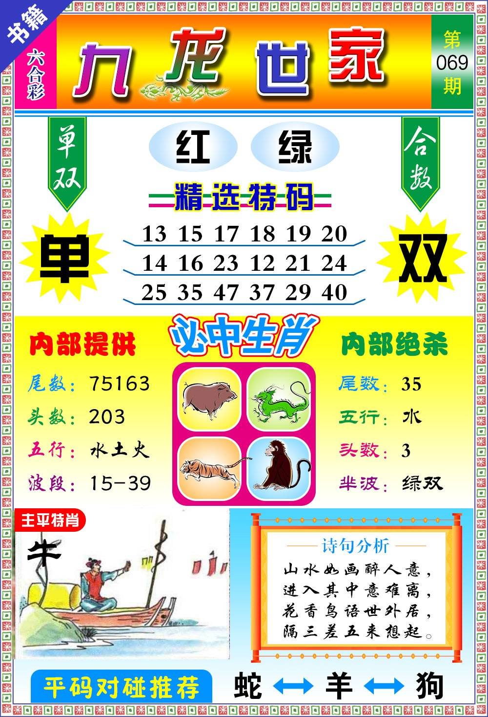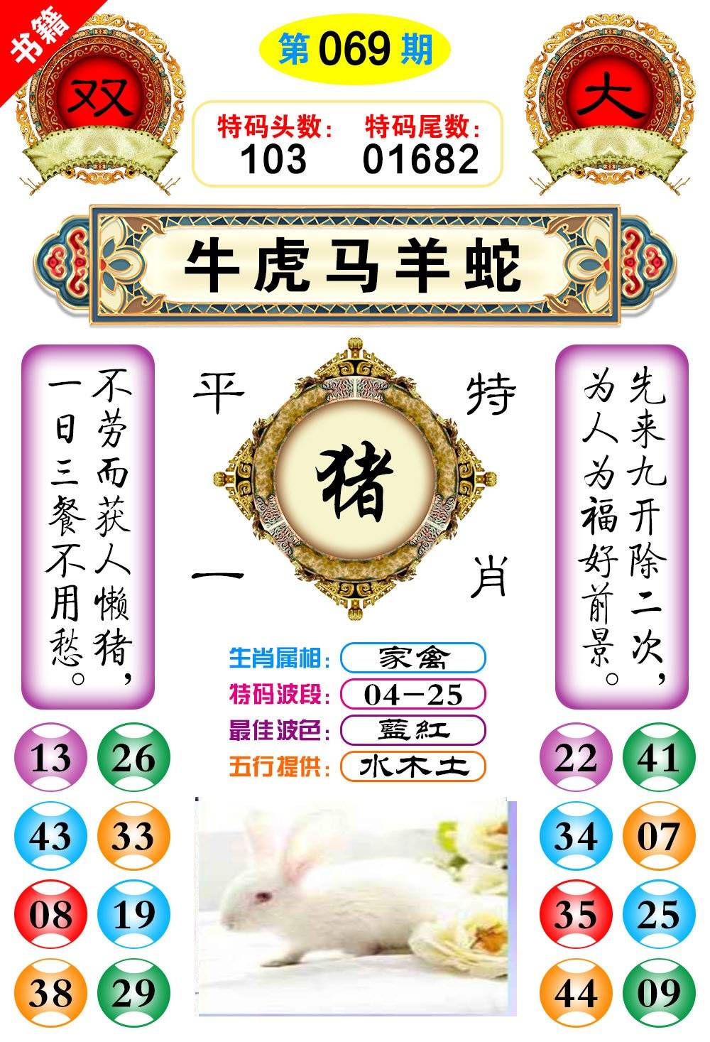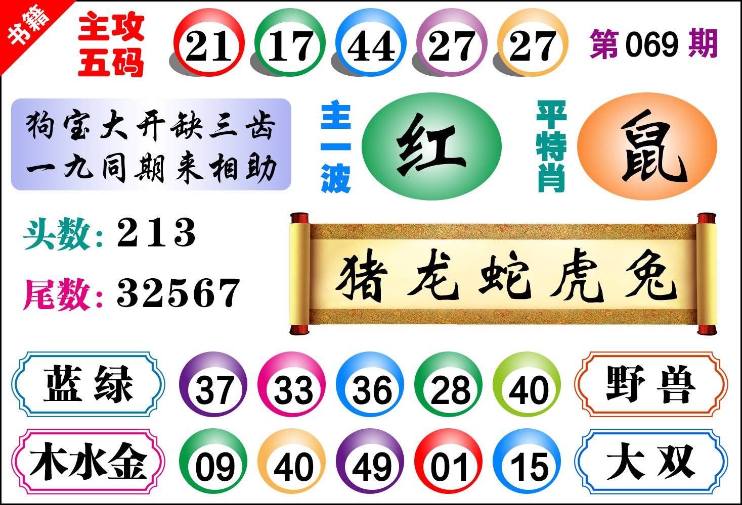 | 069期 家 【牛猪鸡】 野 【蛇猴兔】开 ??? | |