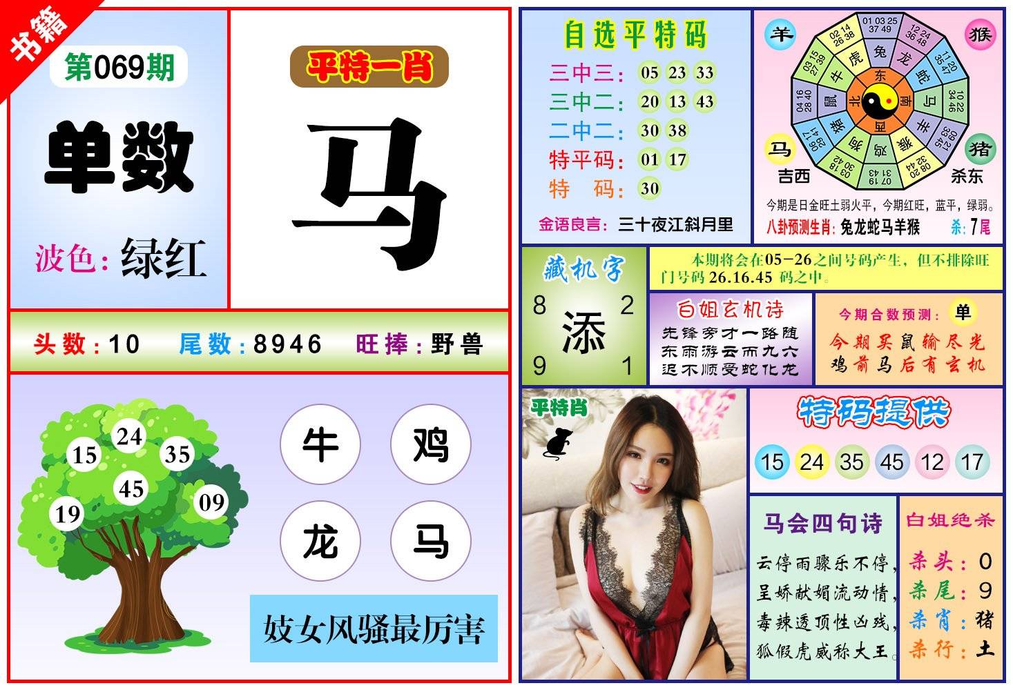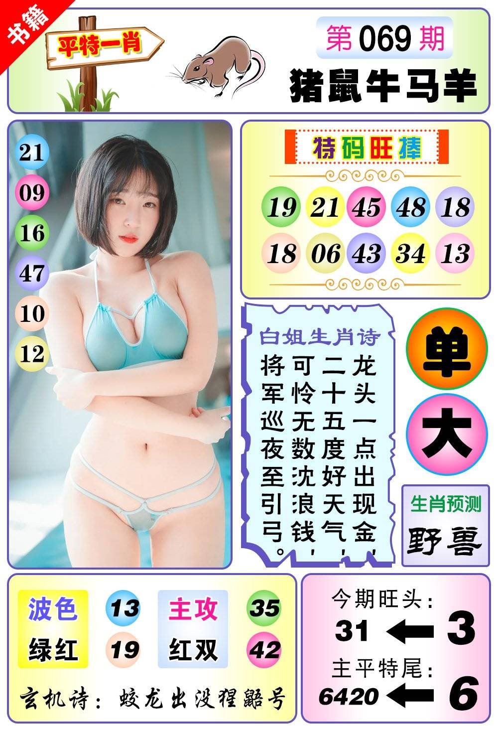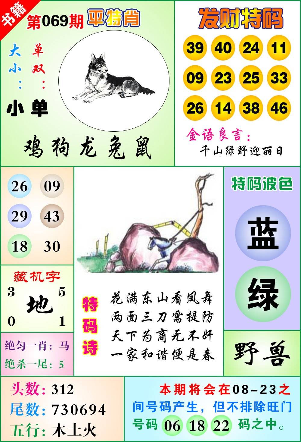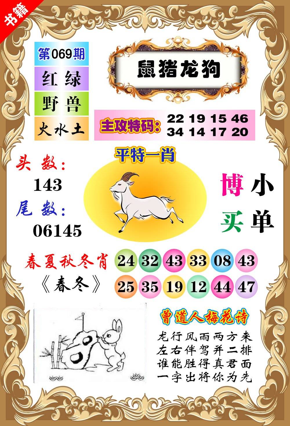 | 069期 家 【牛猪鸡】 野 【蛇猴兔】开 ??? | |