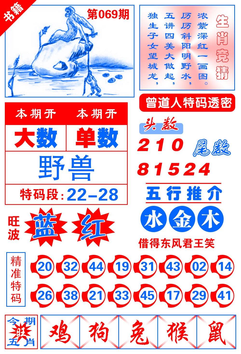 | 069期四肖:牛鸡马猴 |