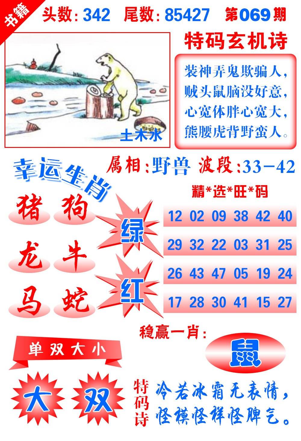 065期 【水-火-木-土行】 开牛42错 |