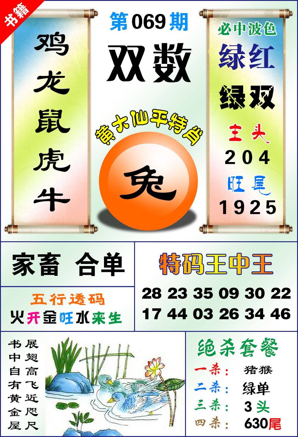 | 064期二肖:兔鸡 |