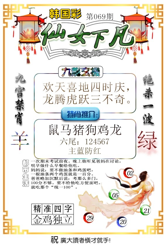 | 068期四肖:羊鸡蛇龙 |