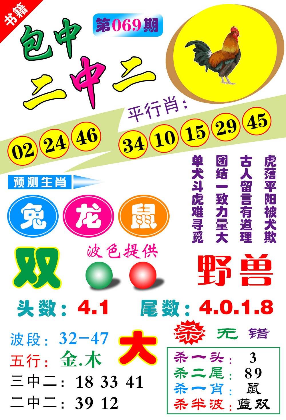 | 068期二肖:鸡蛇 |